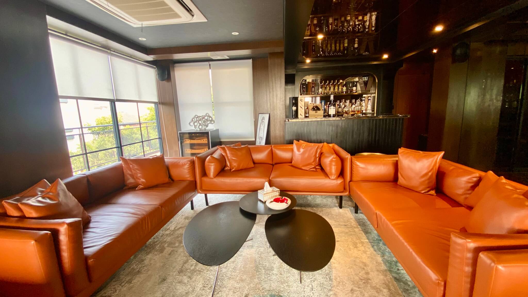 Desain interior lounge Gaharu adalah perpaduan harmonis dari gaya urban chic dan mewah. Dilengkapi tempat duduk yang nyaman dan bergaya, seperti sofa plush dan kursi lounge chic, menciptakan lingkungan yang mengundang. Lokasi strategis di Jakarta.